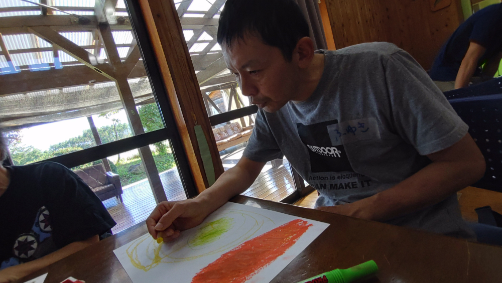 今月の「このまちのアトリエ」は8/2(土)に、県の障害者施設「西駒郷」で美術を担当している小川秦生さんによるアートサポート講座でした。