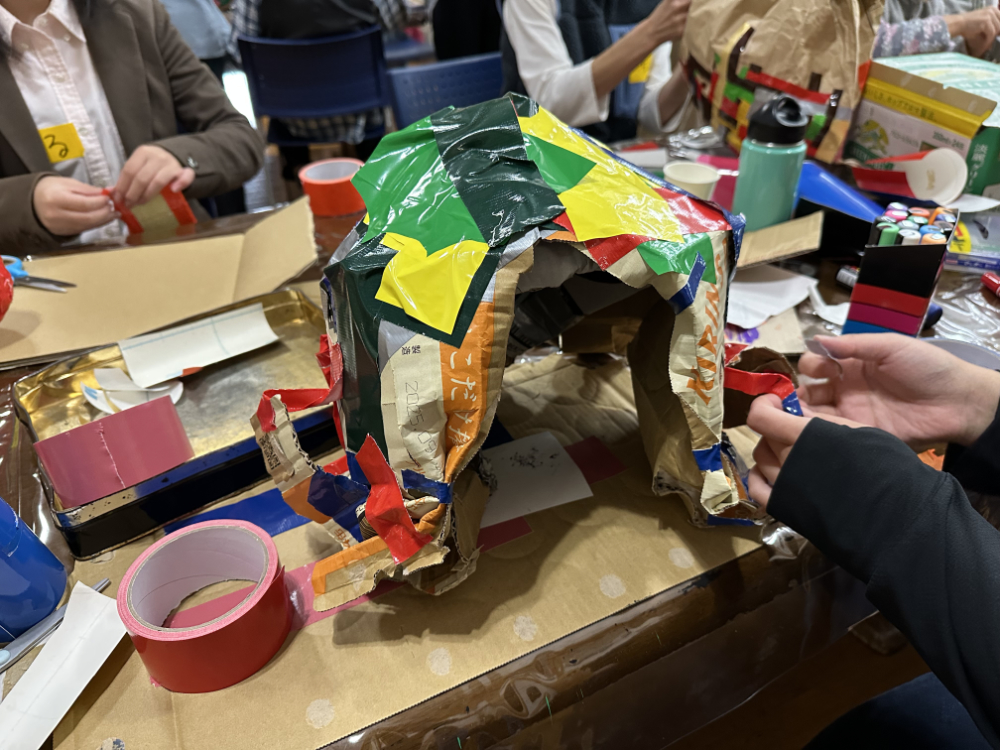 一応の提案はあるものの、「自分で創りたいものがあったら、それでOKです~」とゆるやかな声掛けにみなさんほっとされ、それぞれ創りたいものにチャレンジ。