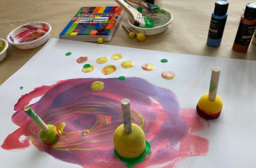 紙にスポンジでポンポンする人