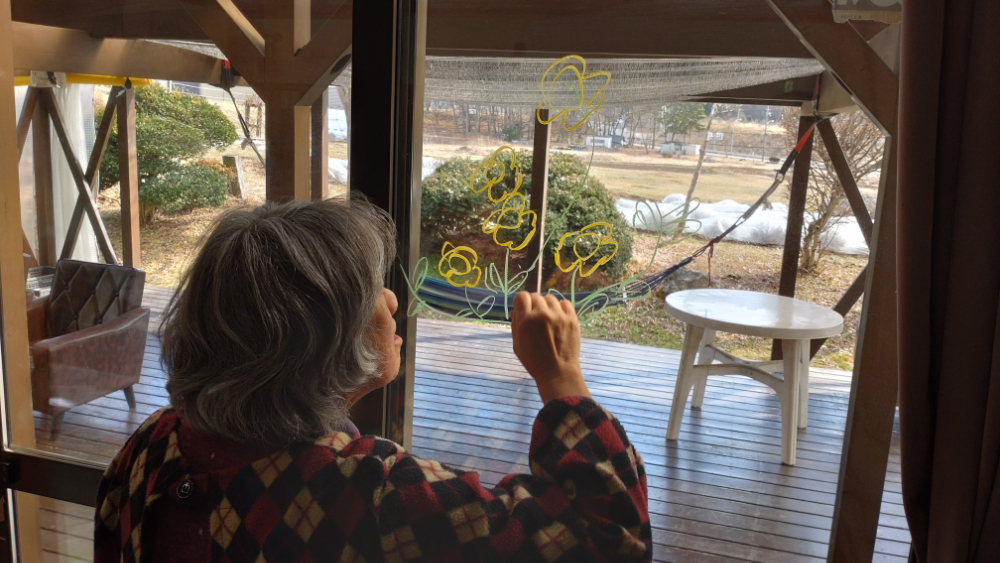 淺井さんがデザインして板から切り出した、「チューリップとたんぽぽ」の文字と、木のかけら。それぞれ好きな形を選んで、装飾しました。一人で黙々と描いたり、時には他の人にパスしてコラボで仕上げたり。小さなパーツが行き交う様子は、言葉のない手紙のやり取りのようでした。